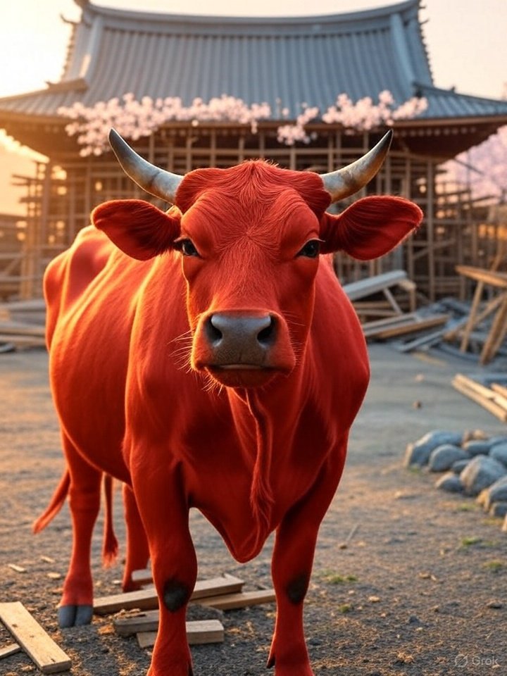 - When laborers were struggling to haul heavy lumber up the mountain to build the temple, a large red cow appeared out of nowhere and began to help.