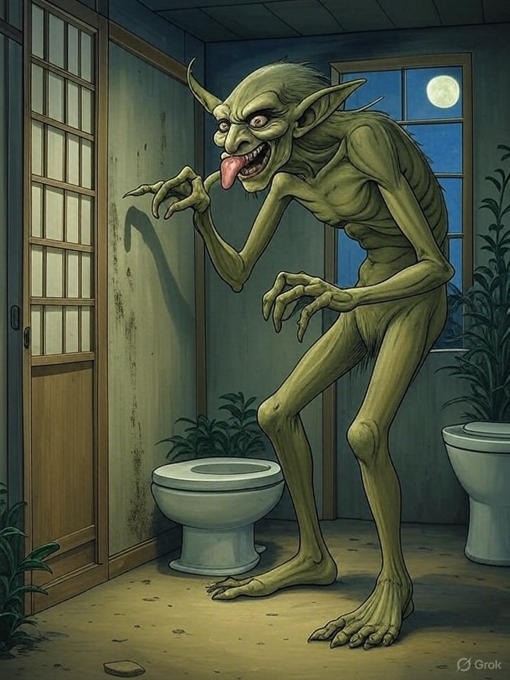 Akaname (垢嘗) is one of the more bizarre and unsettling yōkai from Japanese folklore, known for its filthy habits and grotesque appearance. Its name literally means “filth licker”, and it embodies the fears and superstitions surrounding uncleanliness in the home.