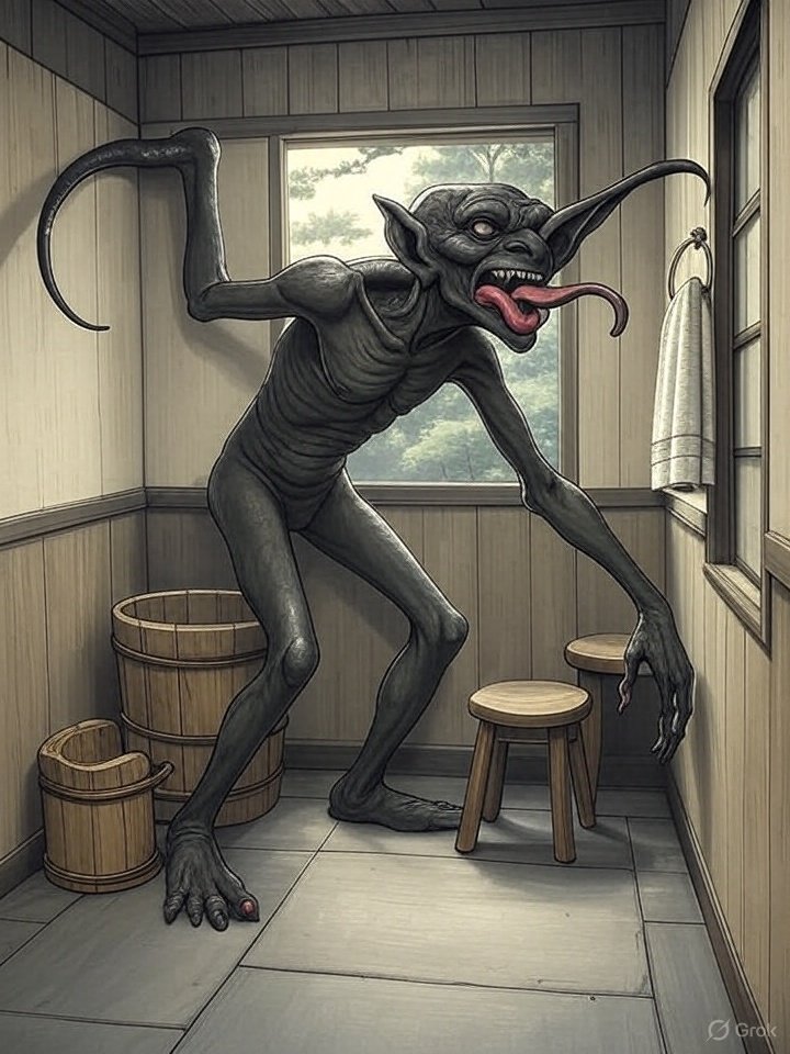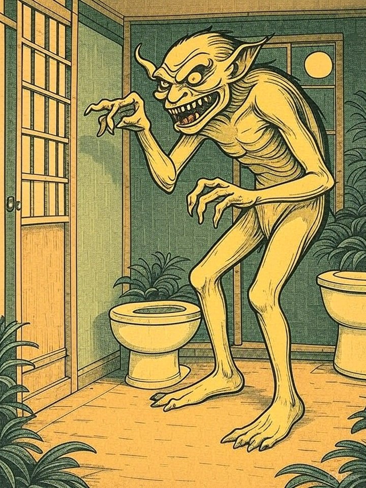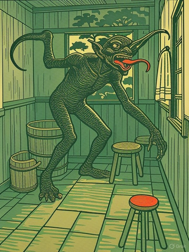 Akaname (垢嘗) is one of the more bizarre and unsettling yōkai from Japanese folklore, known for its filthy habits and grotesque appearance. Its name literally means “filth licker”, and it embodies the fears and superstitions surrounding uncleanliness in the home.